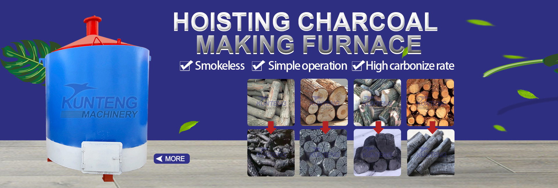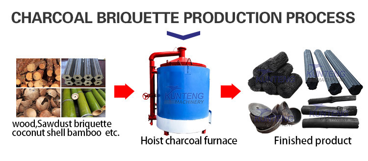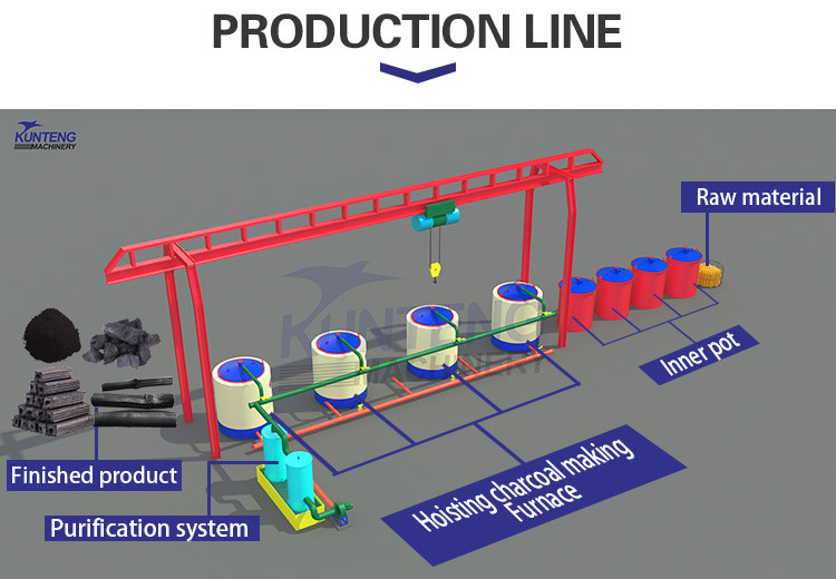 4. The lifting carbonization furnace is equipped with a flue gas recovery device, and the recovered flue gas can be ignited like liquefied gas, as a heat source for its own carbonization, and the production environment is smokeless and tasteless.