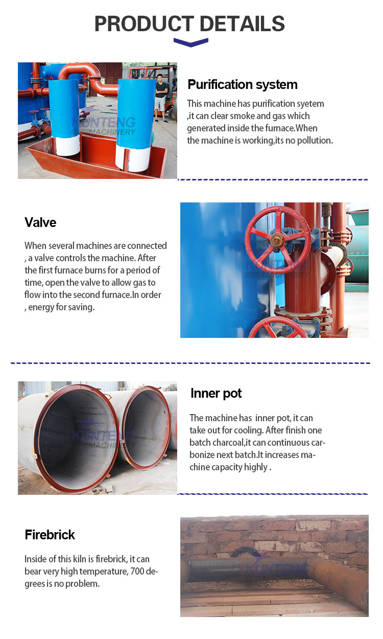 1, carbonization rate of up to 80%, no smoke emission, no pollution, high efficiency