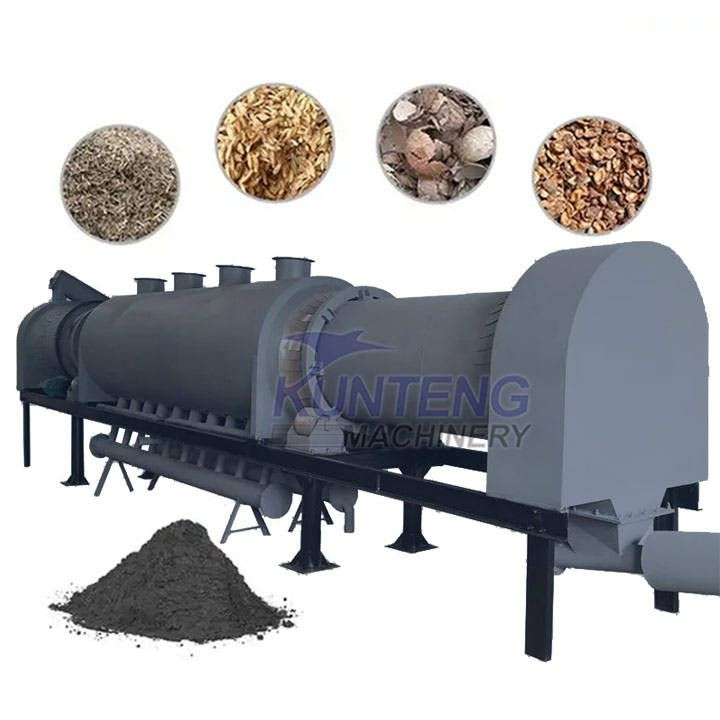 KUNTENG Continuous Carbonization Furnace inside temperature can reach to 800 ℃,the output charcoal with high quality, high calorific value and less impurities. Realize continuous production of charcoal and solves the problem of slow and less production by traditional Charcoal Making Machine.