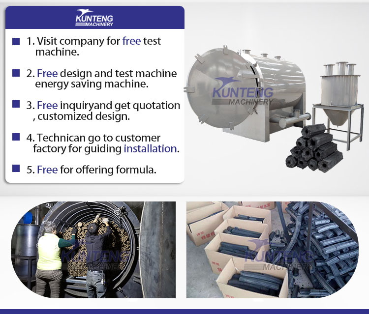 Henan KUNTENG Machinery Manufacture Co.,Ltd is specilize in producing briquette machine, there are many useless material in the world, our machine can make these material recycling use, and make high profit for user. Our equipment can make charcoal or briquette from waste material. Since our companys inception, has high credibility. And we help customers design the best quality product line for different types machine. Our machine sold at home and abroad. We supply those certifications like CE ISO9001, CO, Form E, COC, CIQ, to help customers from different countries clearance.