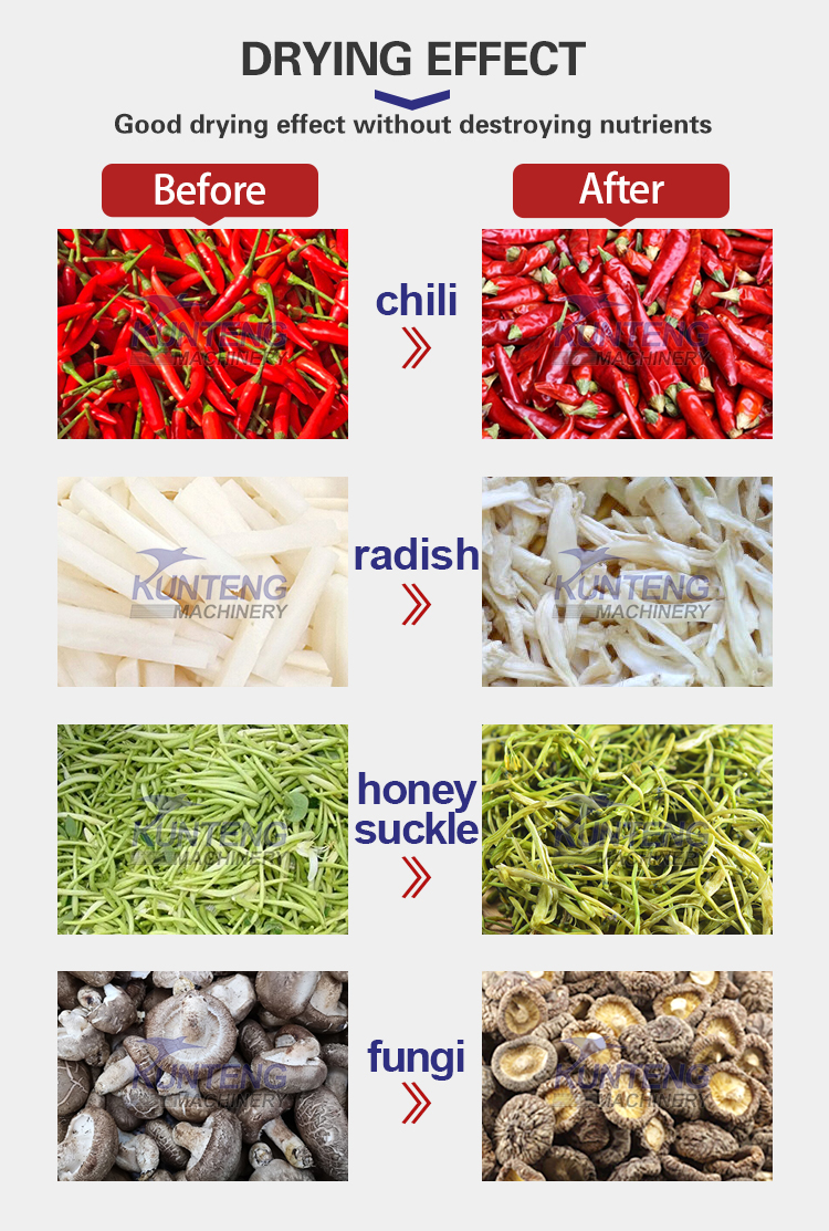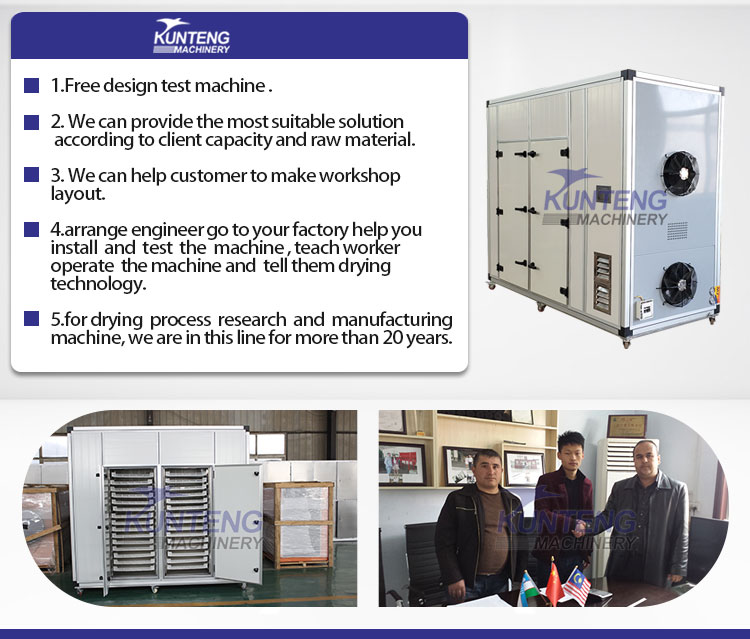KUNTENG company was founded in 1999. We have been engaged in manufacturing all kinds of Fruits and Vegetables Dehydrator Peach Drying Oven,Dehydrator-food vegetable dryer, fruit and vegetable drying machine, potato drying production line,Mesh belt drying machine,Heat pump drying oven for many years.