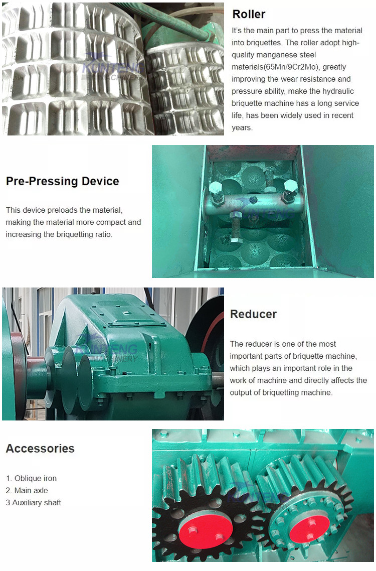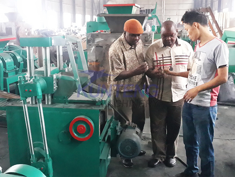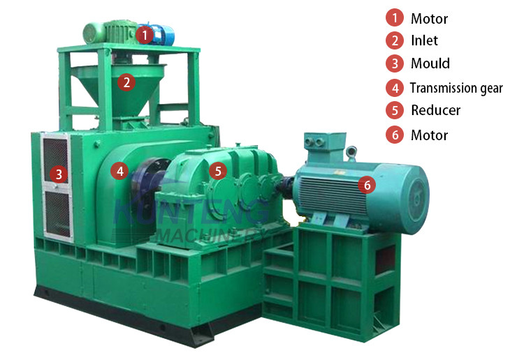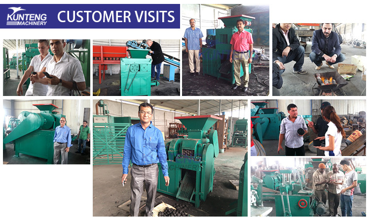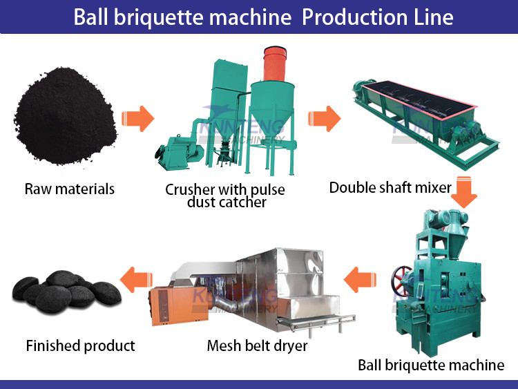 The coal powder briquette making machine making process could follow these steps: Feeding-- crushing---- mixing------ ball pressing------ drying------final product.