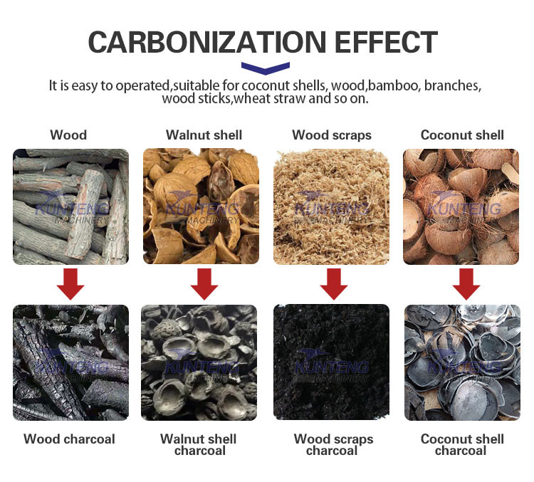 The carbonization furnace is specially designed for the characteristics of long strips of biomass such as waste wood, branches, sawdust, rice husks, and peanut shells.