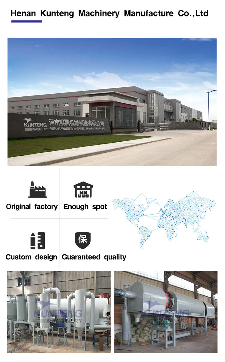 Henan Kunteng Machinery Manufacturing is a professional company that produces carbonization furnaces. There are many useless materials in the world that are converted into usable resources after carbonization, creating high profits for users. Our equipment can produce charcoal or briquette from waste materials. Since our company was established, we have had a high reputation. We help customers design the highest quality product line for different types of machines. Our machines are sold domestically and internationally. We provide CE ISO9001, CO, Form E, COC, CIQ and other certifications.