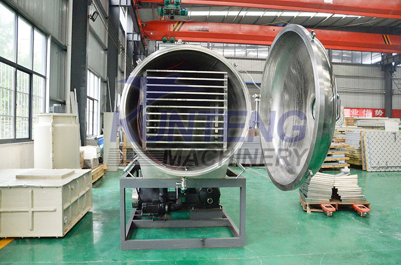 Freeze drying machine is vacuum freeze-drying, the material moisture in the vacuum condition, directly sublimed into gas, maintain the original color, shape, nutrition, with good rehydration and good taste, is todays very popular freeze-dried snack food processing equipment,also widely used in various chemical and biological freeze-drying industries.