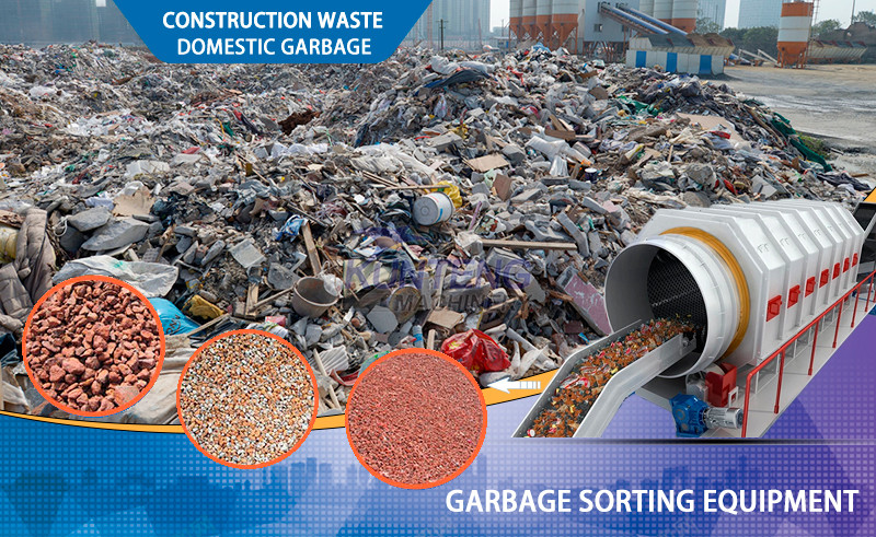 Urban or Household waste: organic, inorganic, waste paper, plastic bags, fabrics, plastics, glass, metals, etc.Construction waste: muck, waste concrete, waste masonry and rubble, brick and tile fragments, waste mortar slurry, asphalt blocks, waste plastics, waste metal, waste bamboo and wood, industrial waste.All of these sorted waste can be recycled after reprocessing.
