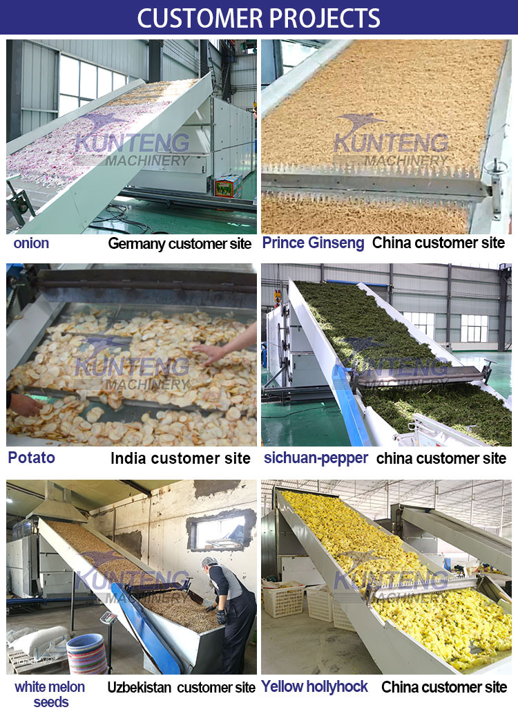 This Continuous Conveyor Multi Layer Mesh Belt Drying Machine can dry vegetables,grains,fruits,flowers and leaves,and tand industry products.At present, it has been used in drying more than 300 kinds of materials.