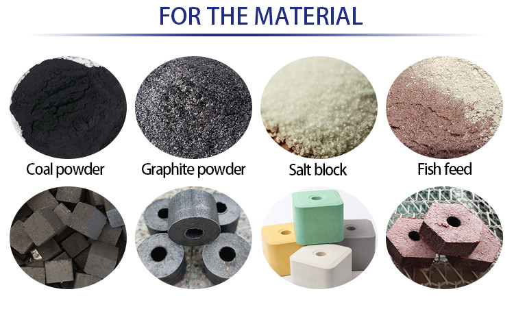 Fine coke hydraulic press machines, charcoal coke briquette making machines and petroleum coke briquetting machines can press a variety of powder materials like charcoal powder, coal powder, coke powder, wood powder and other mineral powder into round, square, hexagon or other shape tablets with high density. Especially, it is widely used in making charcoal briquettes field for shisha charcoal , BBQ charcoal.