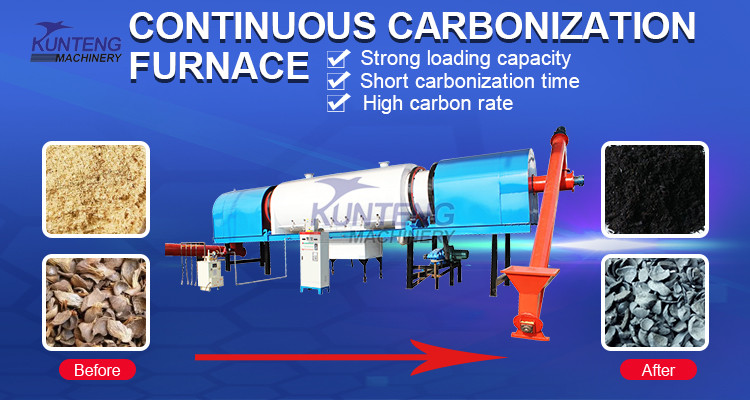 KUNTENG Continuous Carbonization Furnace have environment friendly, high productivity, and smokeless characteristics. It is an new ideal equipment for charcoal production with advanced technology.