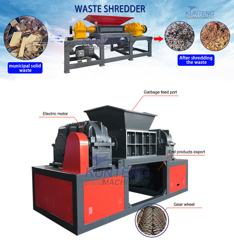 The double shaft shredder have been designed for a wide array of applications and industries, suitable for shredding solid material such as E-waste, metal, wood, plastic, scrap tires, packaging barrel, pallets, etc. Depending on input material and the following process the shredded material can be used directly or go into the next step of size reduction. It is widely used in industry waste recycling, medical recycling, electronic recycling, pallet recycling, municipal solid waste recycling, plastic recycling, tire recycling, paper making industry and etc.
